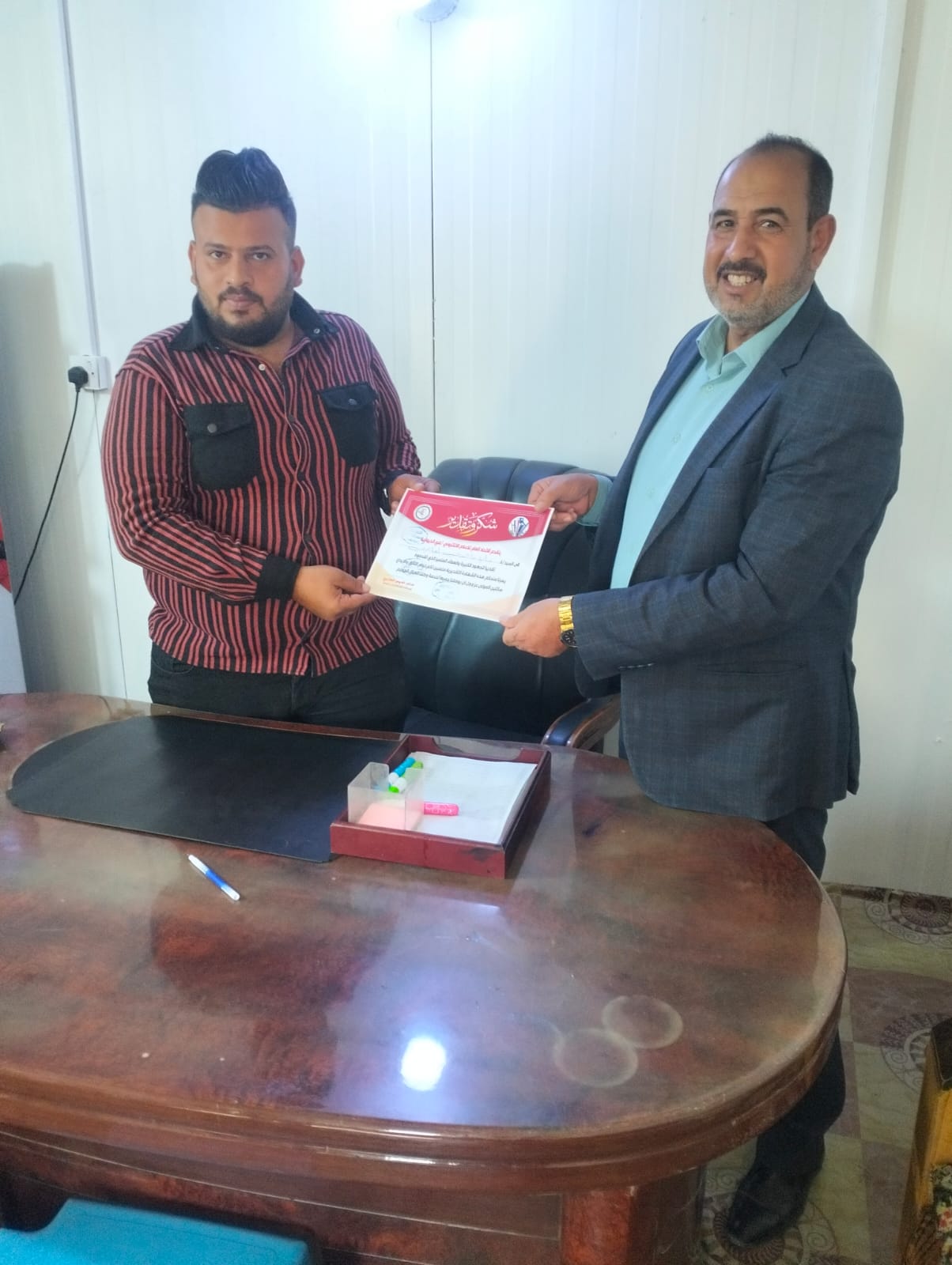 رئيس الاتحاد العربي للإعلام الإلكتروني يزور عضو مجلس محافظة الديوانية الاستاذ رحيم ولي البديري